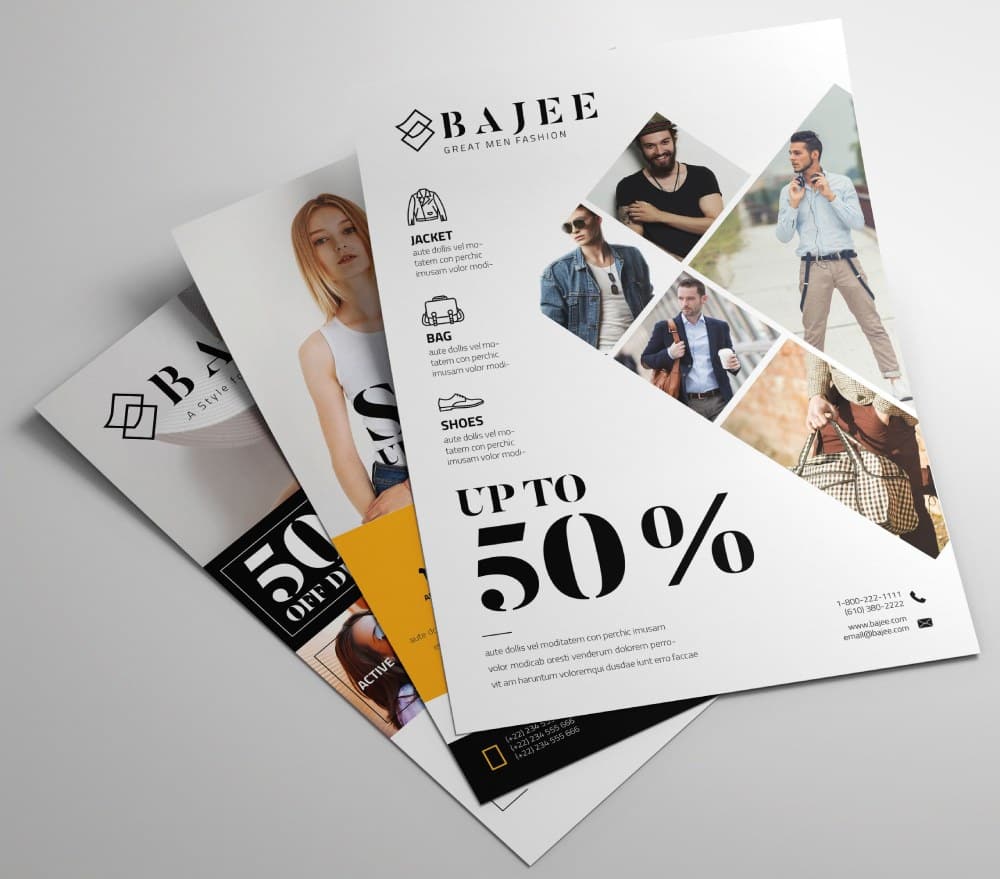 سایزهای رایج شامل A4 (بزرگ برای جزئیات)، A5 (مناسب حراجیها)، A6 (کوتاه و جمعوجور)، A7 (بسیار کوچک) و DL (برای همایشها و اطلاعرسانی) است.