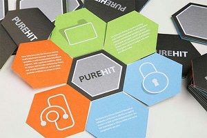 طراح در تصویر بالا، بروشور را به شکل شش ضلعی تکرار شده ای طراحی کرده که در نهایت بر روی هم تا شده و تشکیل شش ضلعی دیگری می دهد.