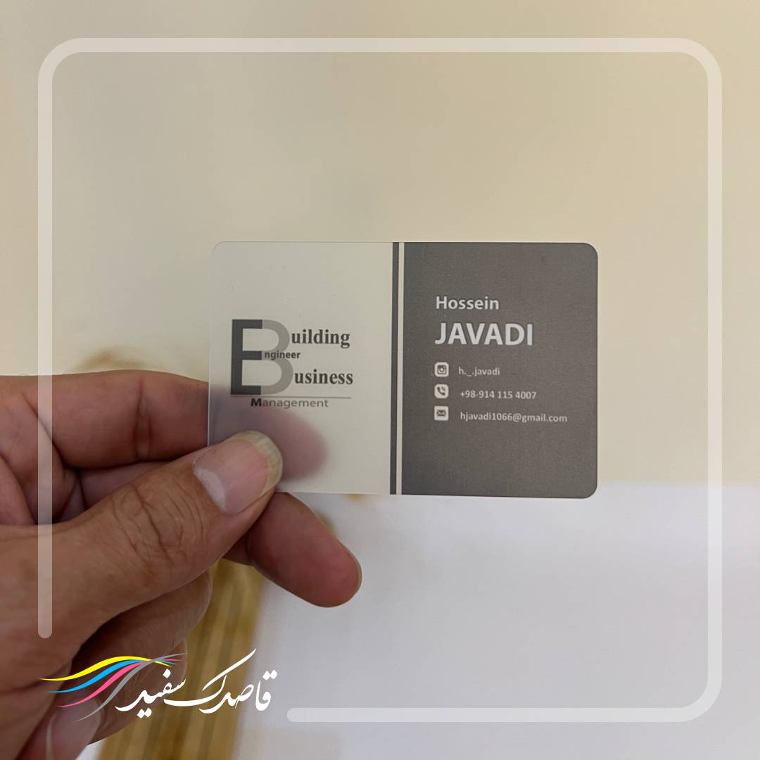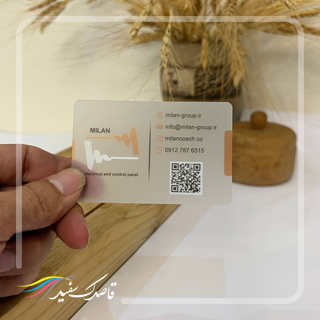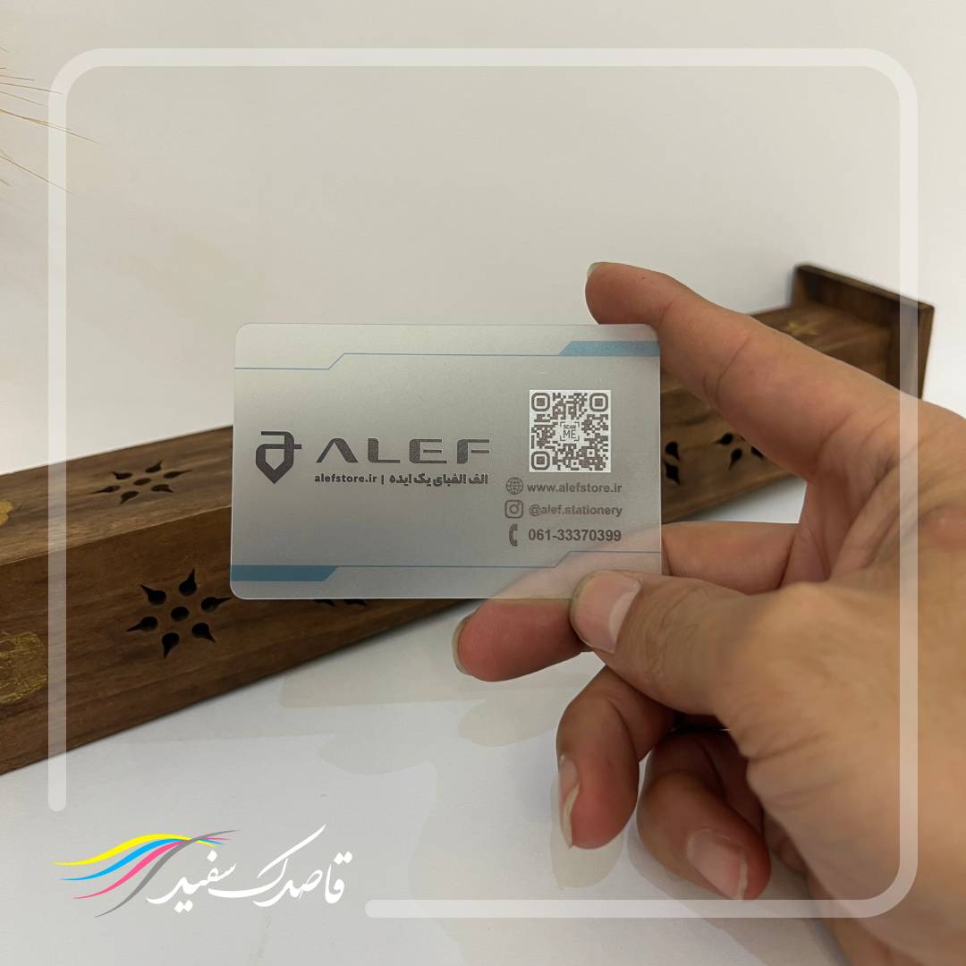 کارت ویزیت شیشهای با طراحی شفاف و جزئیات دقیق، تصویری مدرن و حرفهای از برند شما در چاپ قاصدک سفید