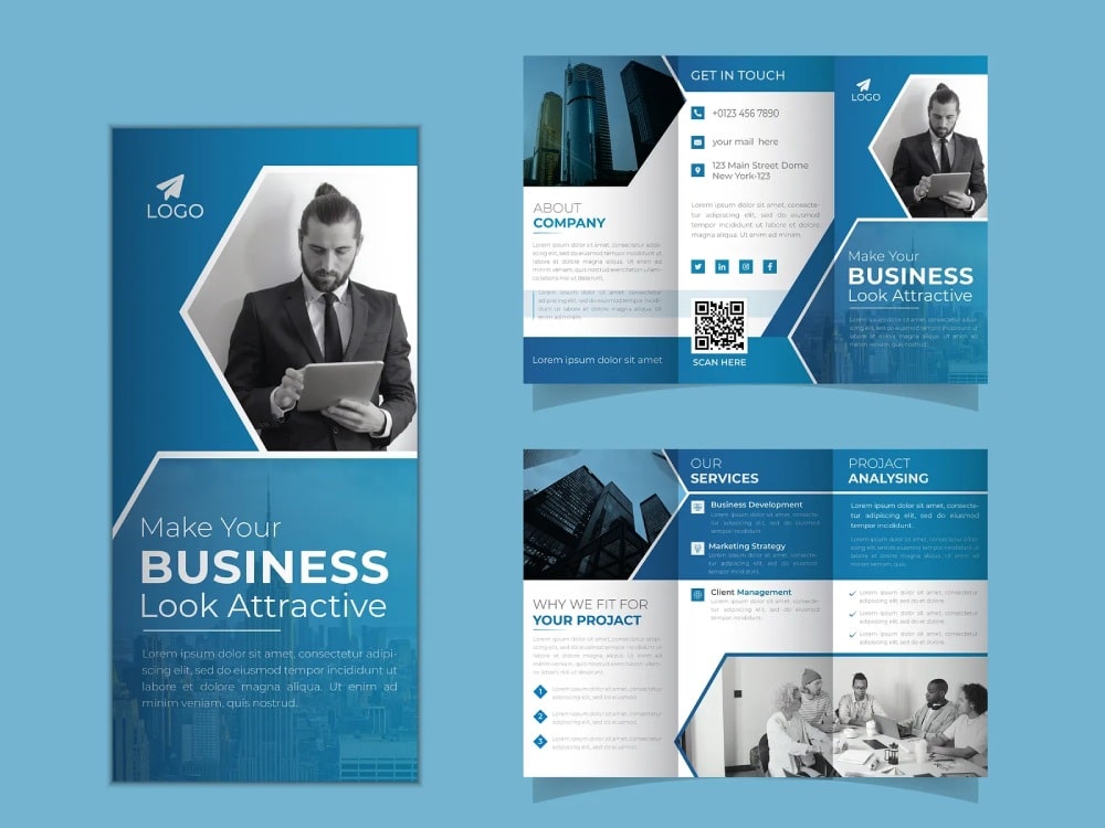 بروشورهای تبلیغاتی معمولاً در اندازهها و قالبهای مختلفی طراحی میشوند؛ از جمله A4، A5 یا DL. طراحی بروشور تبلیغاتی بستگی به نوع کسب و کار، هدف مورد نظر و مخاطبانی که میخواهید به آنها دسترسی داشته باشید، دارد.